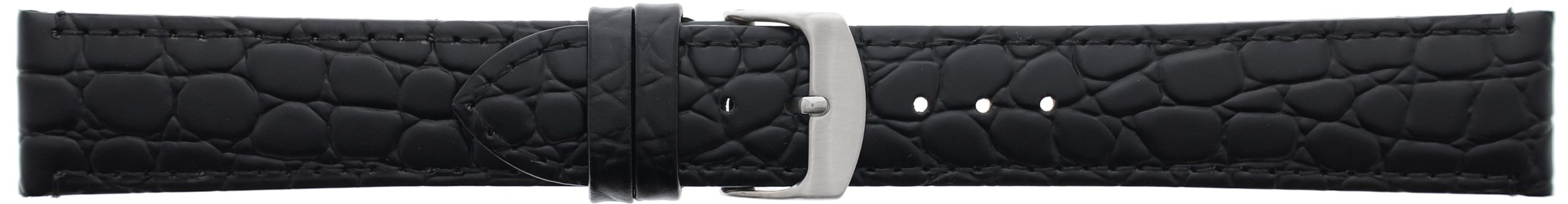 Made with Italian calf leather this round crocodile grain watchband will suit both modern and classic watches. Made with a semi remborde construction method, the band features a fixed and stitched moving keeper. The band comes as standard with a stainless steel buckle, gold plated buckles can be requested at an additional charge.