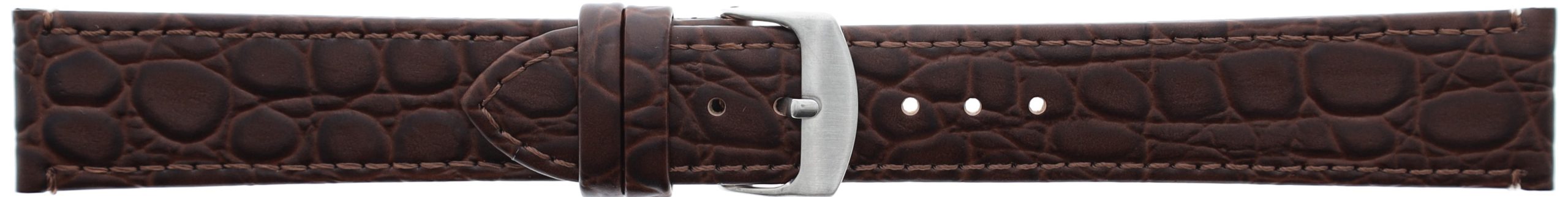 Made with Italian calf leather this round crocodile grain watchband will suit both modern and classic watches. Made with a semi remborde construction method, the band features a fixed and stitched moving keeper. The band comes as standard with a stainless steel buckle, gold plated buckles can be requested at an additional charge.